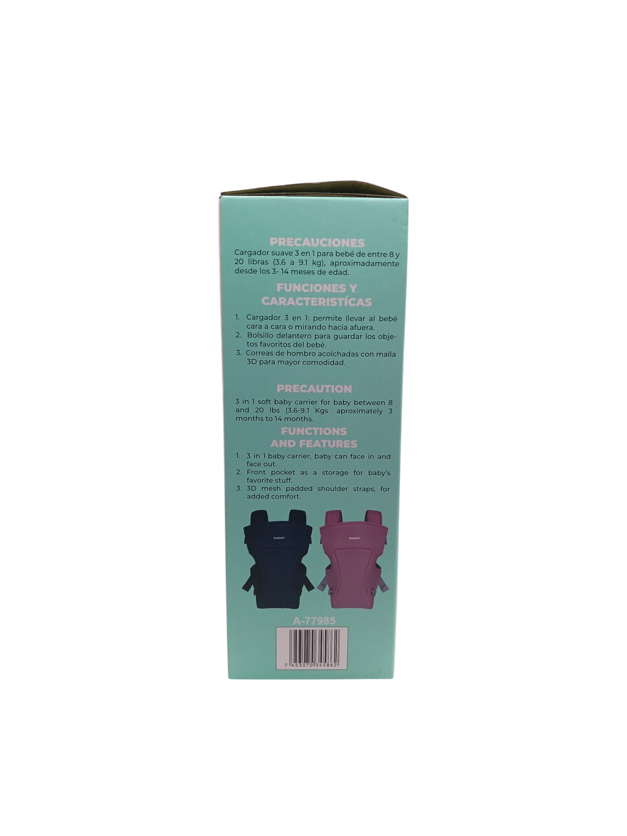 • 3 formas de uso, de frente hacia mamá, viendo hacia adelante y en la espalda.