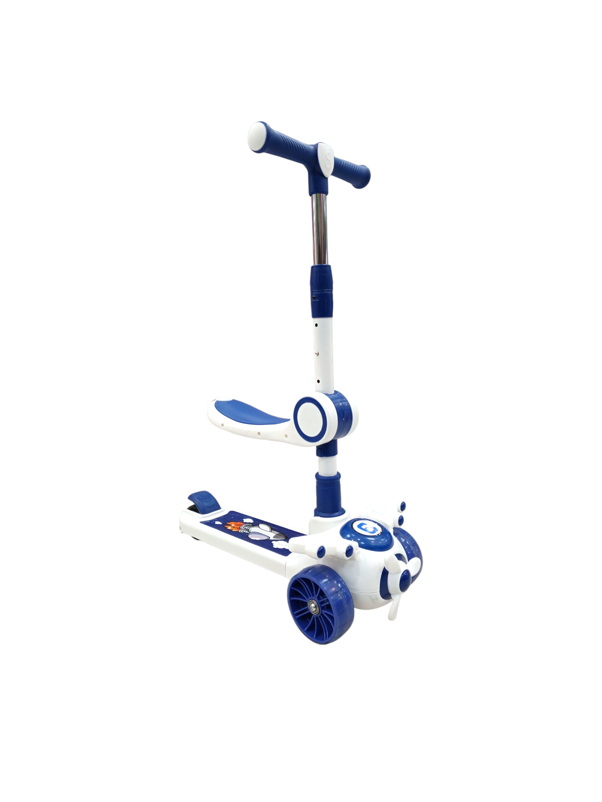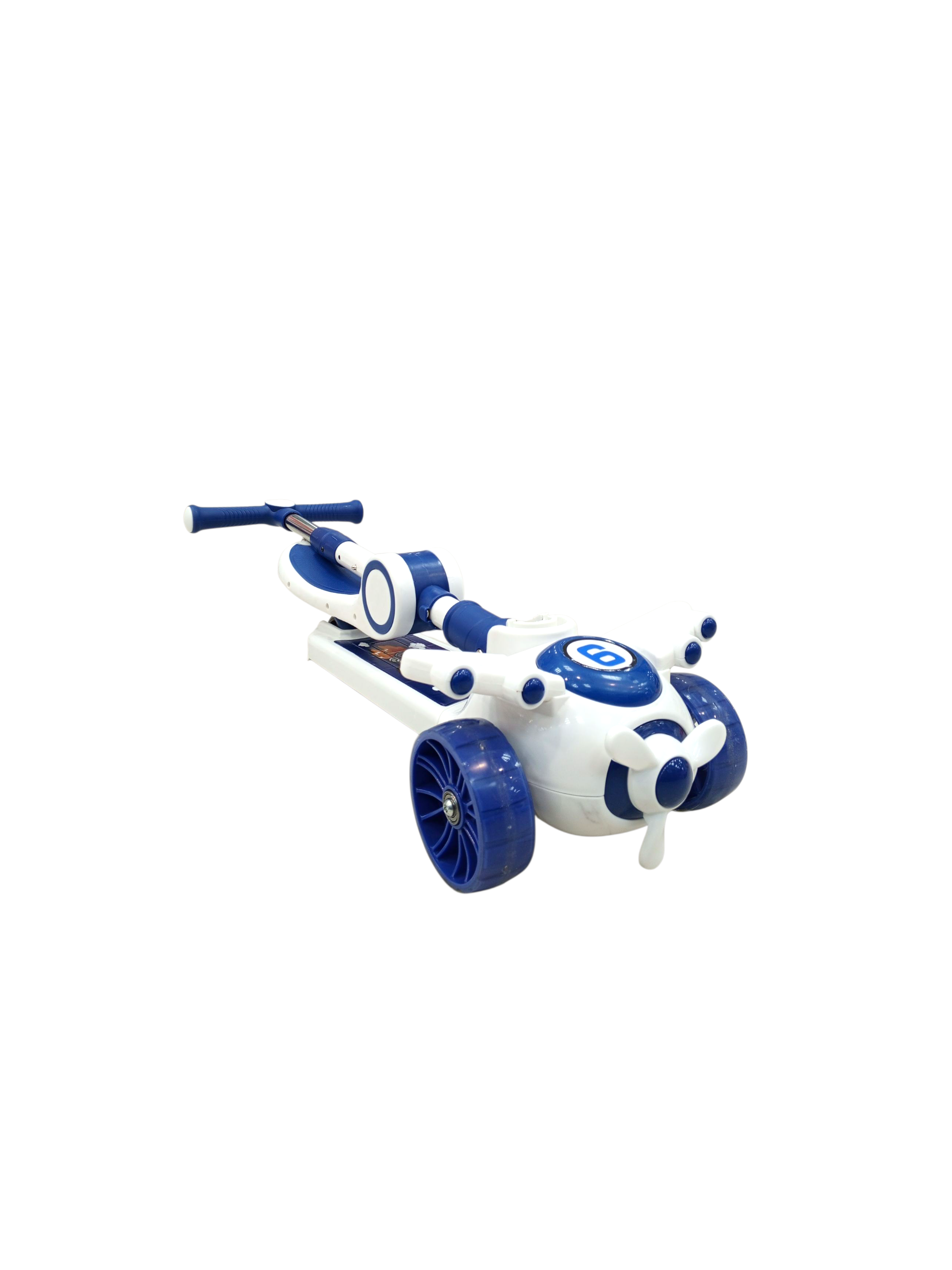Marca: SKColor: BlancoPeso neto: 2,610 KgPeso bruto: 2, 650 Kg.Dimensiones de producto: 24 X 54 X 81centímetrosEdad recomendada: 3+• Scooter con diseño de avión.• Altura ajustable.• Perfecto para la diversión de los mas pequeños de la casa.