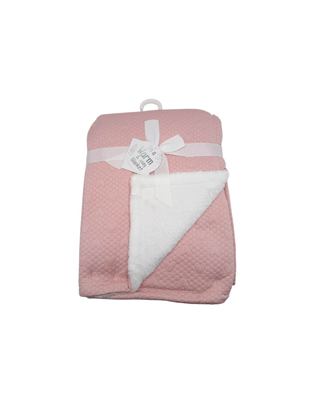 • Doble Cara: Cuenta con una cara exterior de color rosa con un diseño en relieve de corazones y un reverso de color blanco con textura tipo Sherpa (borreguito) para mayor suavidad y abrigo.