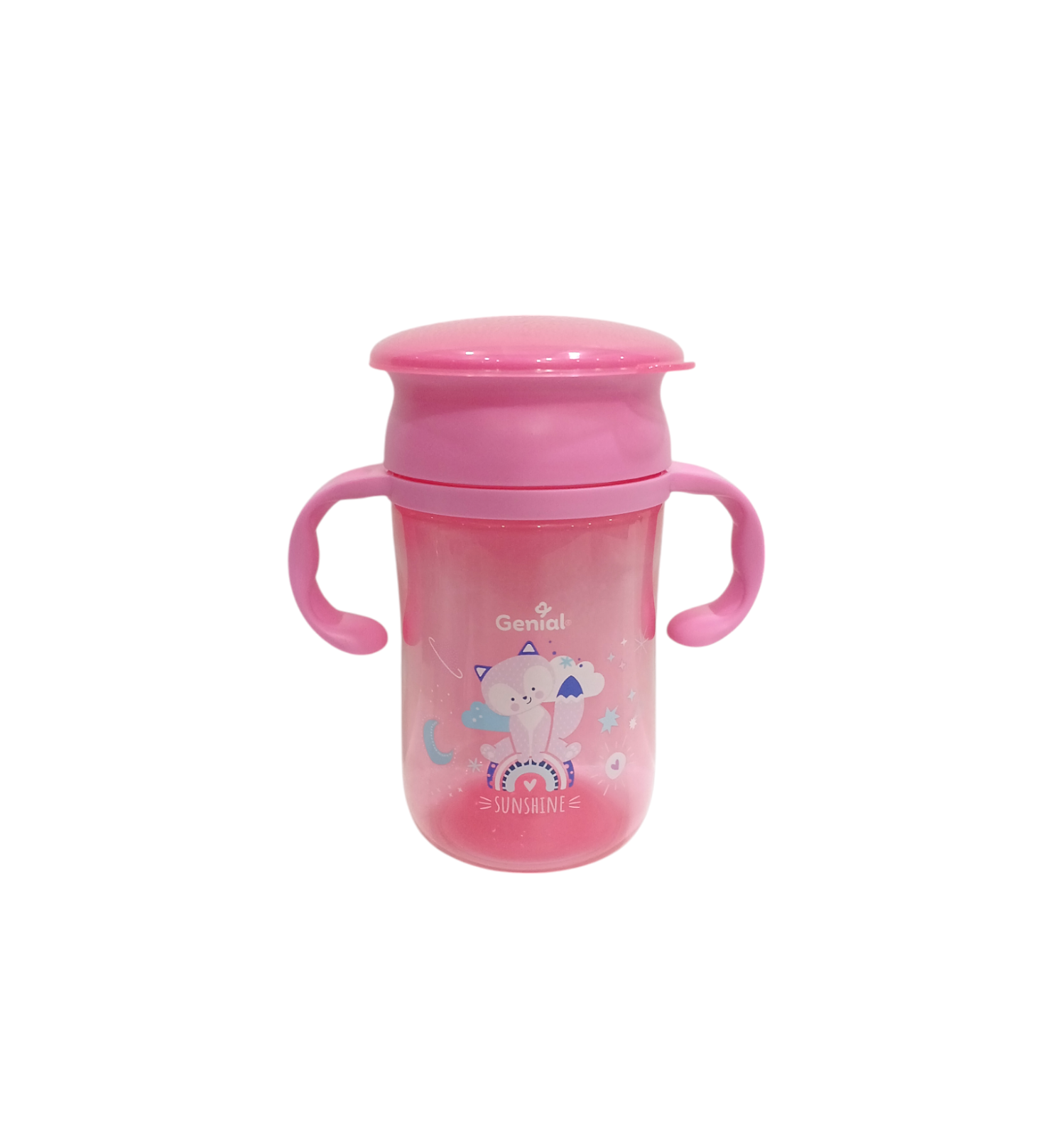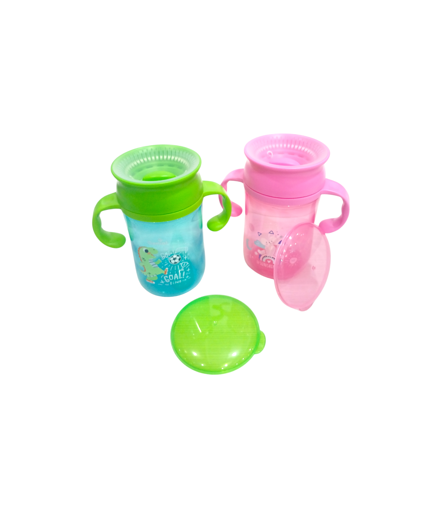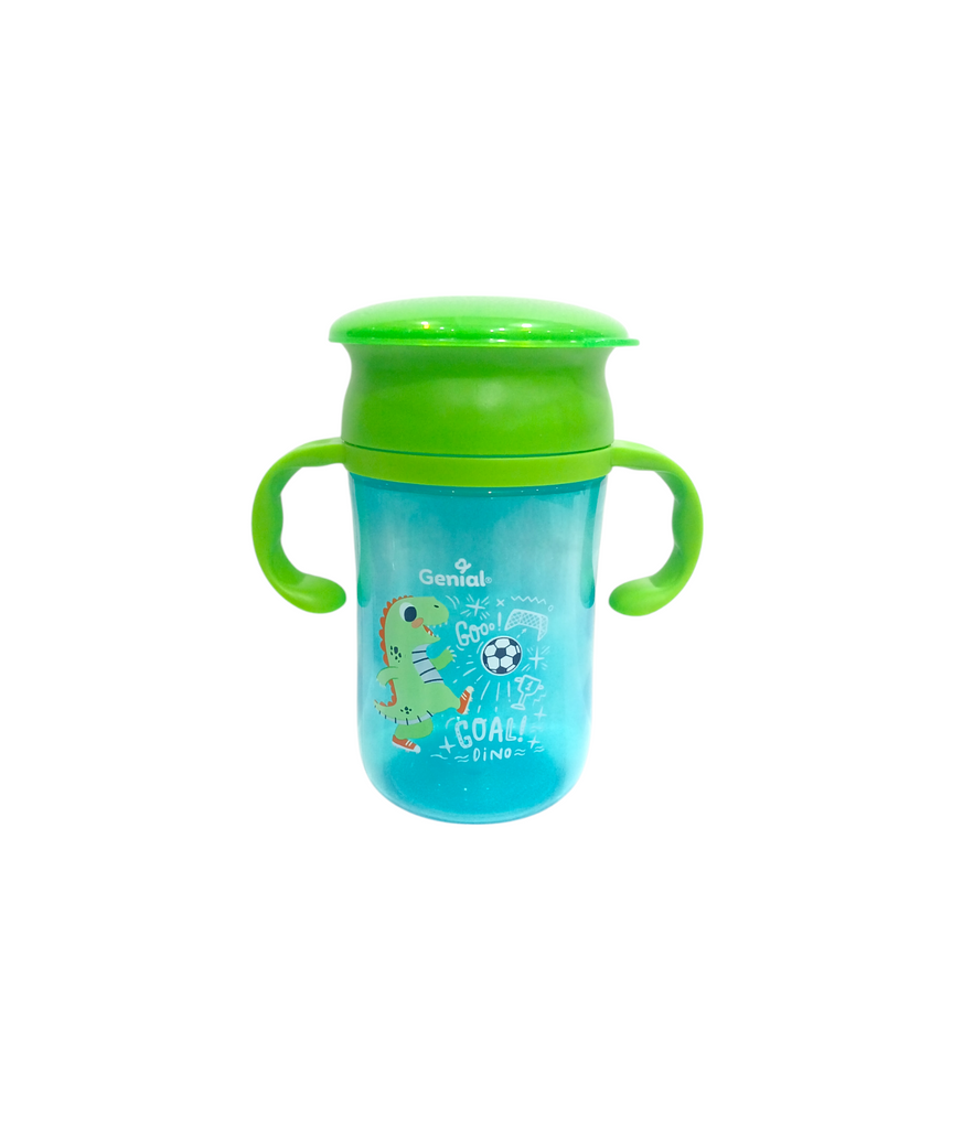 • Vaso de entrenamiento. 270 ml (9 oz) • Doble asa de fácil agarre, ergonómicas y removibles. • Tecnología 360º. • Válvula sensible a la presión.